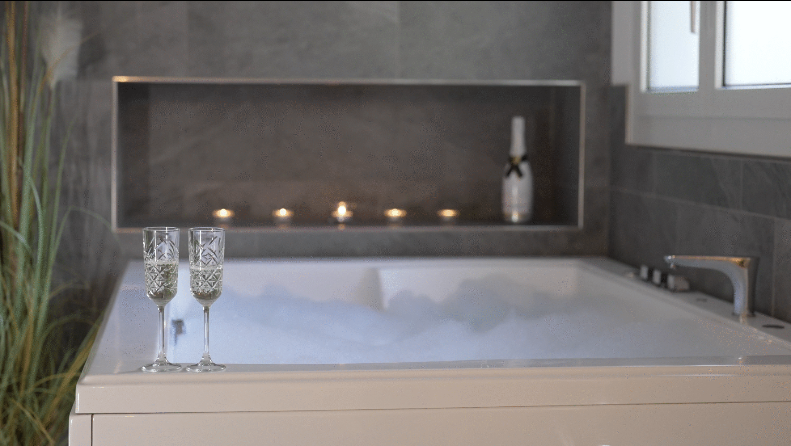 Gönnen Sie sich Wohlfühlmomente mit Peelings, Gesichtsmasken und dem verführerischen Duft von Kerzen. Lassen Sie sich mit Drinks und Snacks verwöhnen und genießen Sie ungestörte Zweisamkeit.