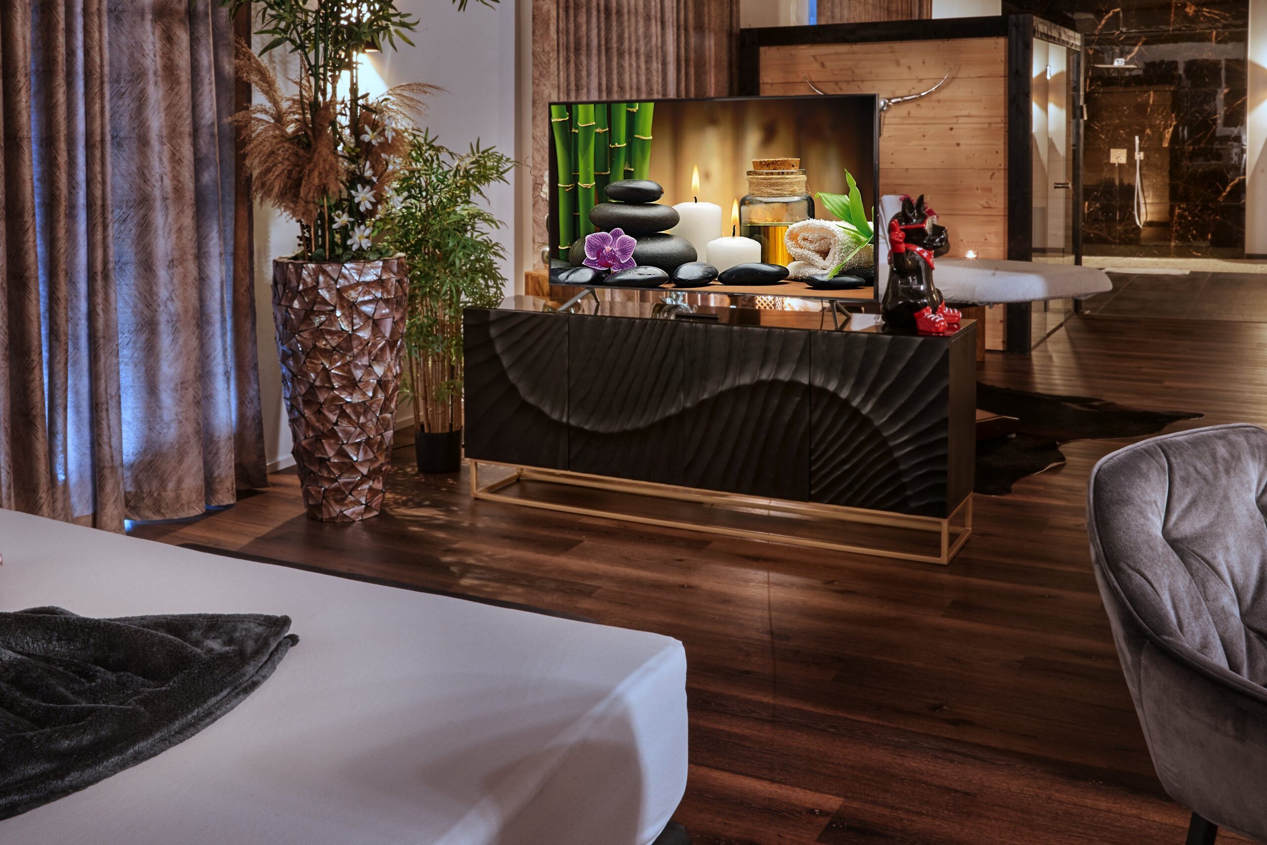 Ob für einen romantischen Tagesaufenthalt oder eine sinnliche Übernachtung – genießen Sie den Whirlpool, die Sauna und die stilvolle Ruhezone.